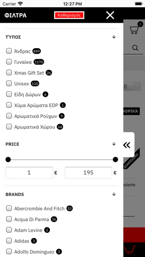 Βρείτε αυθεντικά επώνυμα αρώματα των οίκων όπως Abercrombie, Burberry, Bvlgari, Boucheron, Cacharel, Calvin Klein, Clinique, Dior, DKNY, Dsquared2, D&G, Escada, Estee Lauder, Fendi, Givenchy, Gucci, Guerlain, Hermes, Hugo Boss, Issey Miyake, Gaultier, Jimmy Choo, Joop, Juicy Couture, Kenzo, Lancome, Lanvin, Lalique, Marc Jacobs, Montale, Mont Blanc, Moschino, Narciso Rodriguez, Paco Rabanne, Prada, Roberto Cavalli, Shiseido, Thierry Mugler, Tom Ford, Valentino, Viktor & Rolf, Yves Saint Laurent.