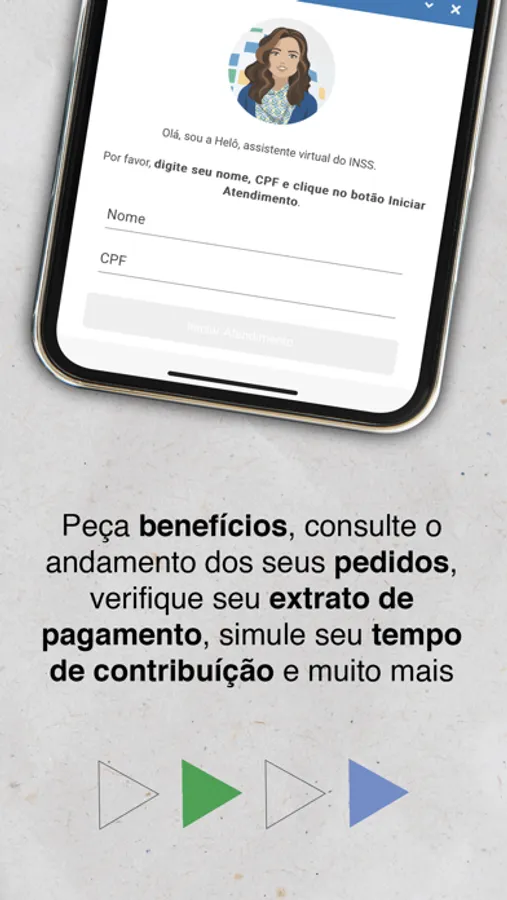 - peça um benefício ou serviço e acompanhe o andamento do pedido;
