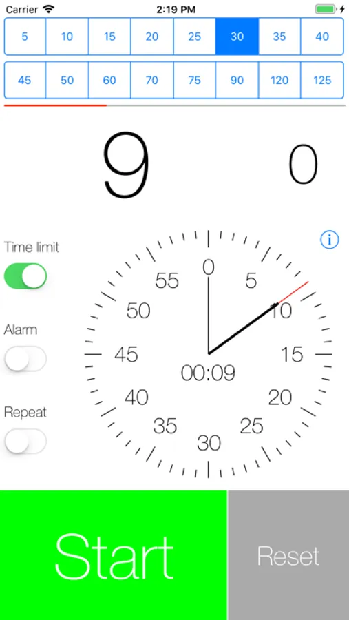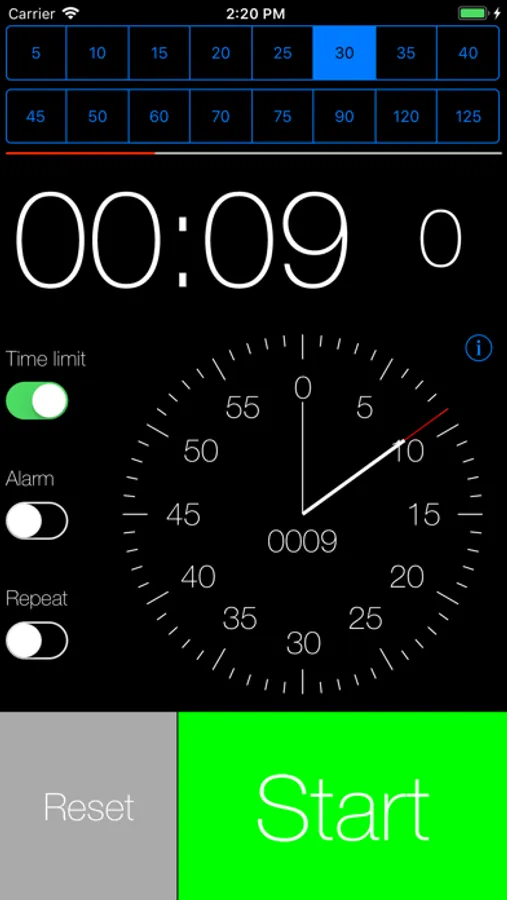 - A progress bar will display the elapsed time if a time limit has been chosen.