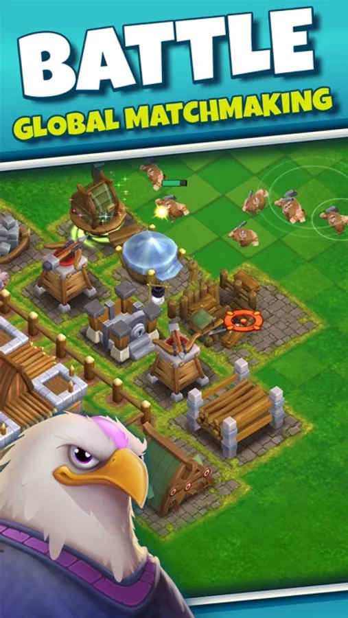 Walk around and find bases to battle right in your neighborhood, or matchmake remotely with players around the world. Earn gold, wood, and stone from battles to build up your empire!