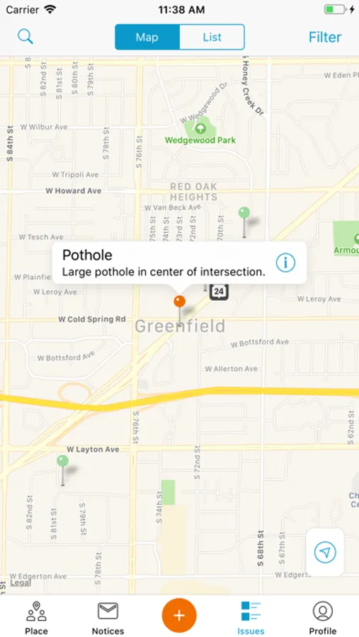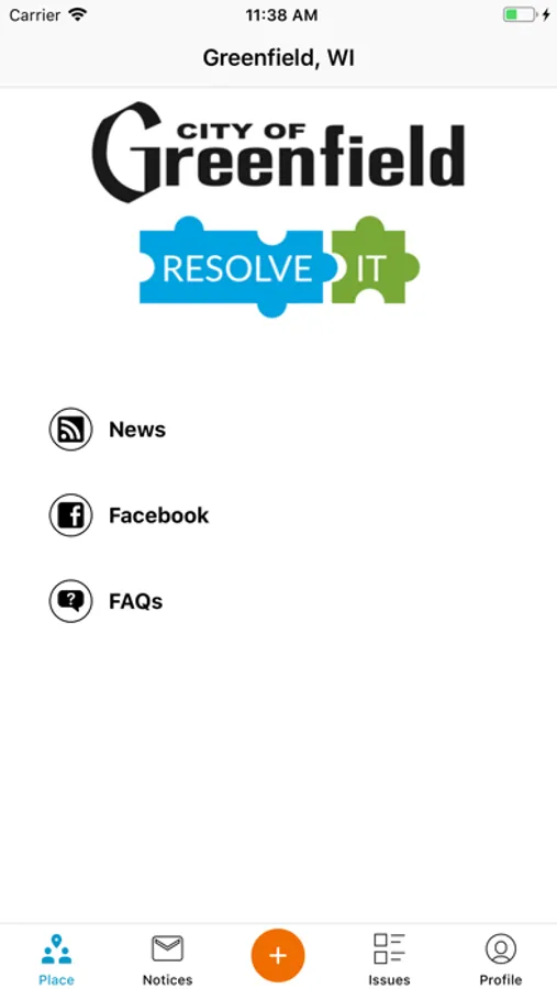 Resolve It makes connecting with the City of Greenfield easier than ever. You can quickly report non-emergency issues (such as potholes, graffiti, or damaged sidewalks), and even attach a photo of the issue. You can also comment on and follow issues that have been reported by other residents of the City of Greenfield. The exact location of the issue can either be pulled automatically using GPS or adjusted manually. Once submitted, the report will be routed to the appropriate department within the City of Greenfield and you will be notified when action is taken. Community members can follow and comment on your submission. In addition, the app can be used to connect to the City on social media, find out the latest news, check out upcoming events, and more! Resolve It makes it easier than ever to reach out to the City of Greenfield!
