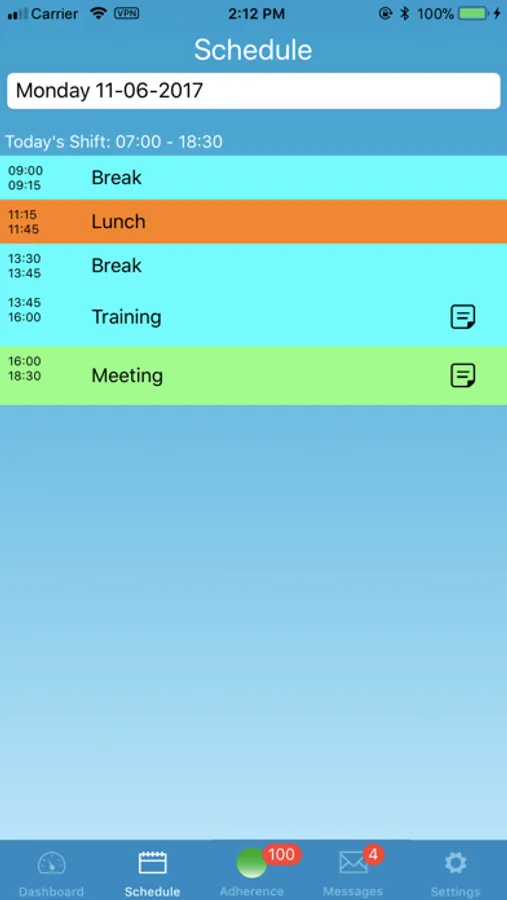 The Noble ShiftTrack Mobile app gives you easy access to your work schedule from your smart device. See when you are scheduled to work, go on breaks, change activities, or go to meetings or training. It alerts you for new messages that you can easily read on-the-go. You can also see your up-to-date schedule adherence status at any time.