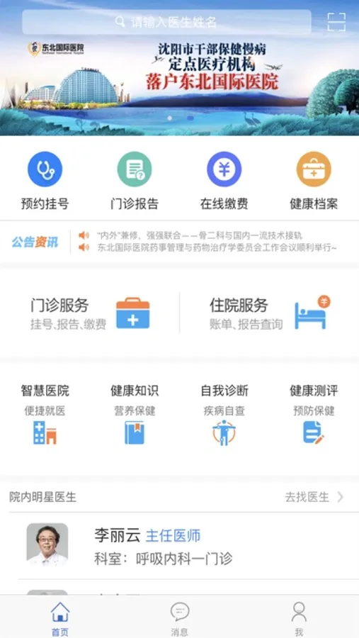 东北国际医院,旨在用移动信息化技术提高您的就诊体验,以提供门诊预约挂号、查看检查、检验报告等功能,并让您随时随地与医院的医生进行即时互动。