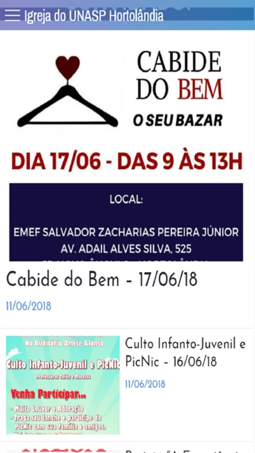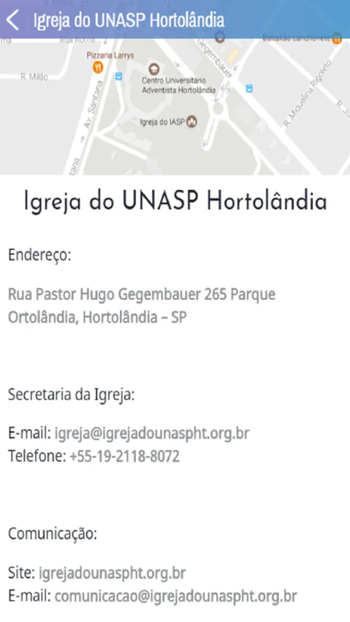 Aplicativo da Igreja Adventista do Sétimo Dia da Universidade Adventista do estado de São Paulo, campus Hortolândia (conhecida anteriormente como IASP), em Hortolândia - SP, Brasil.