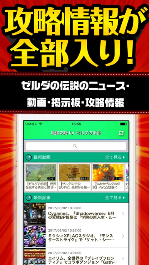 最新ニュース、攻略まとめ、実況動画、掲示板をこのアプリ1つで全て網羅!