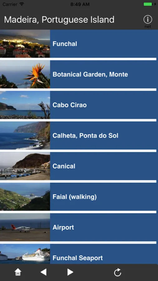 Impressions of the island of Madeira, Portugal. The app serves as a suggestion or as a support for your travel planning. View photos of some places, the port of Funchal, the airport, the coast and the countryside. Or visit the aquarium in the north of the island, with Video. In addition: current weather, information from Wikipedia, webcams close by, Steetview, Videos, Panorama Pictures, map.