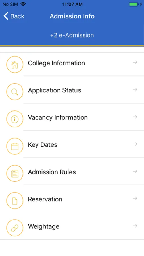 The application notifies the key dates or any other declaration to user through the Google notification. It has following modules that will help the user get +2 and +3 admission related information.