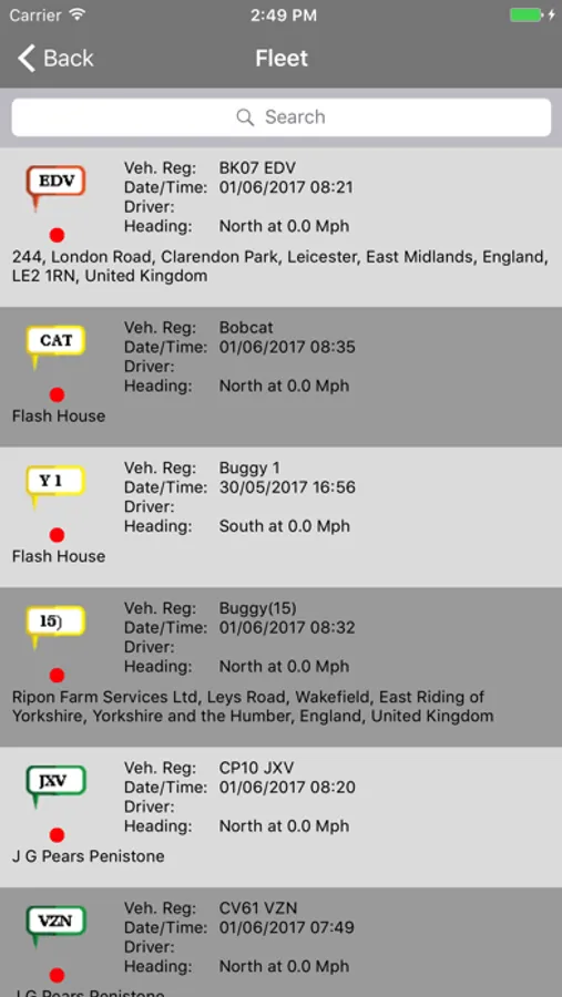 Vehicles – Location, Direction and Speed of the vehicle