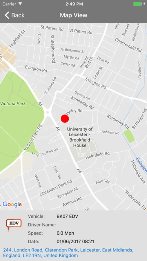 Map – Vehicle is plotted on the map.