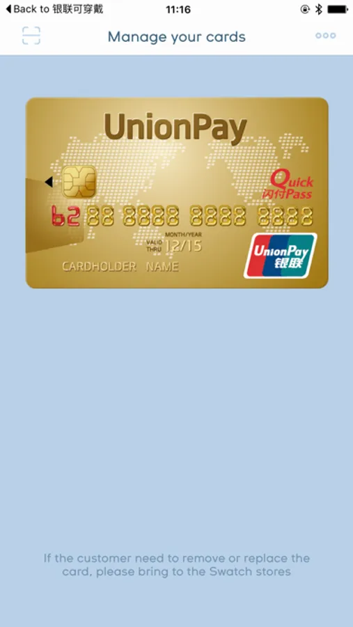 Wonderful Pay app is an assistant tool for adding bankcard payment function to Swatch Bellamy (which is cooperatively developed by Swatch and UnionPay). It is the key to unlocking a whole new world of contactless technology with Swatch Bellamy.