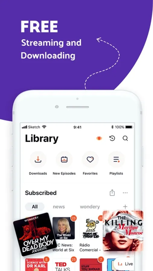 Super intuitive and easy-to-use podcast app & podcast player for iPhone with: