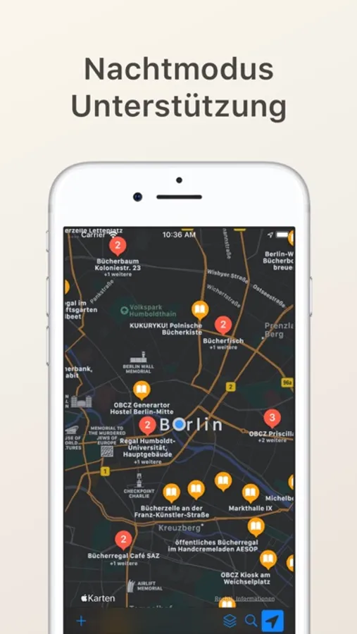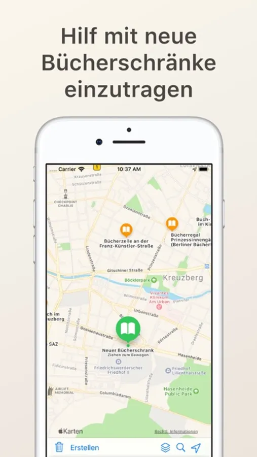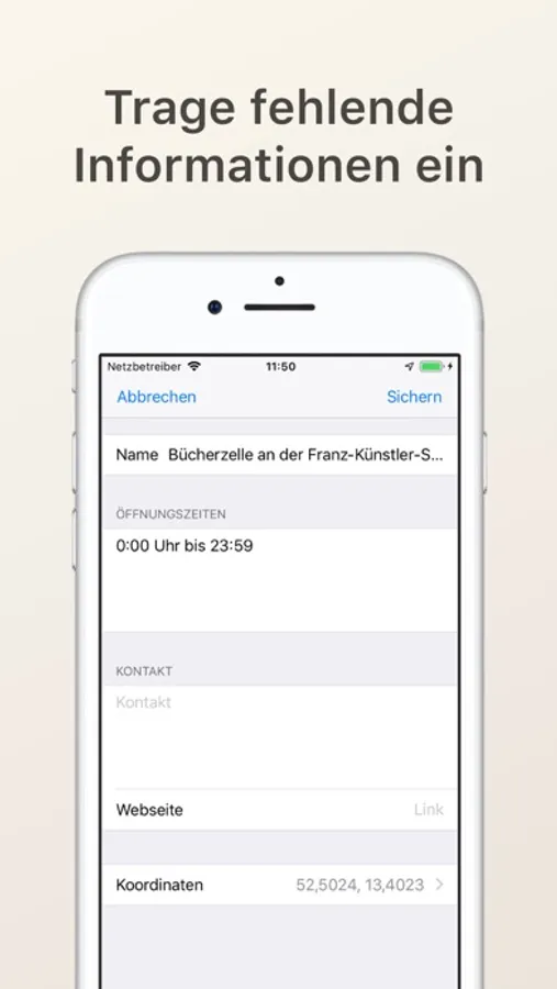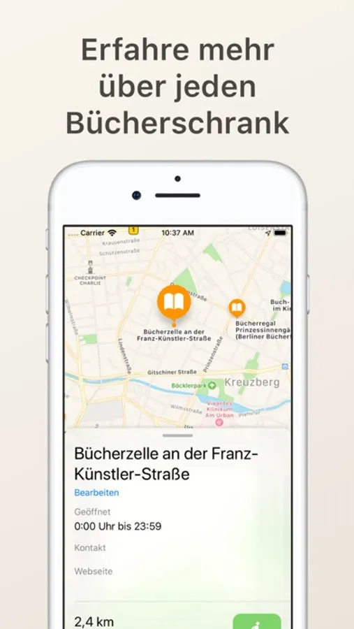 There is additional information for each bookshelf like opening times, contact information and a related website.