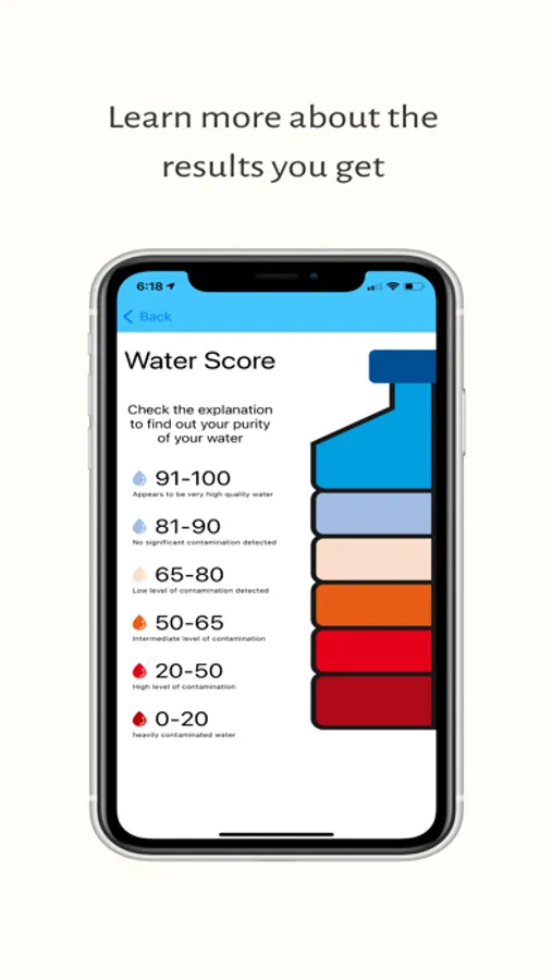 The app provides a water score for each test you've conducted, and segments any testing by tap water, bottled water, and natural water such as from rivers and streams.