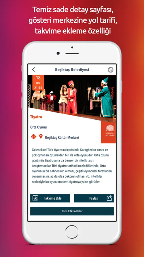 Bu etkinlik uygulaması, yaşadığınız şehirdeki tüm aktiviteler konusunda uzman editörlerimizce özenle seçilerek sizlere sunulmaktadır.