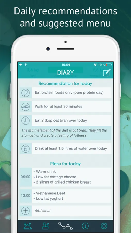The app uses data from the standard Health app for reading and noting your average weight and kilometres covered/steps taken.