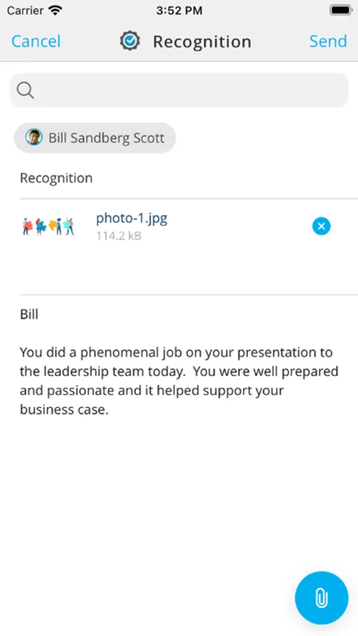 * Share in-the-moment feedback, recognition and coaching tips with colleagues in your team and across your organization. You can include photos and links with your feedback.