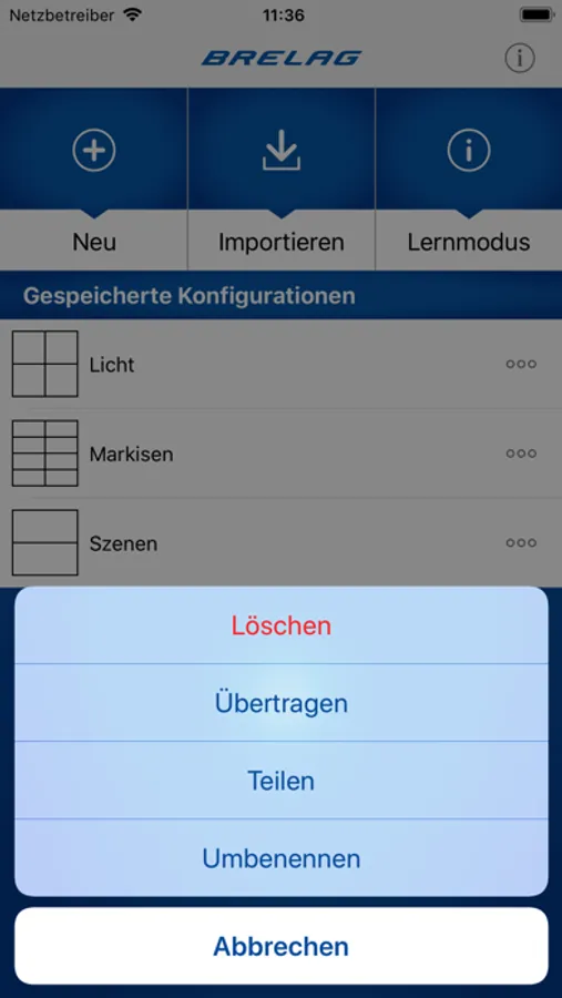 In der Brelag Assistant-App und per Bluetooth lässt sich jeder Taste ganz unkompliziert eine Funktion zuweisen. Dabei wählen Sie genau das Tastenschema, nach dem Sie auch den Funktaster konfiguriert haben. Vollkommen ohne Programmierkenntnisse lassen sich so folgende Funktionsbefehle zuweisen: