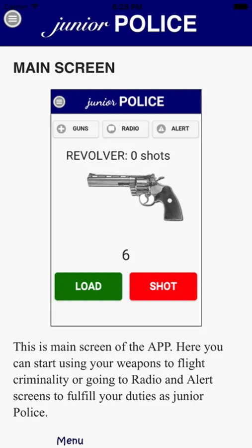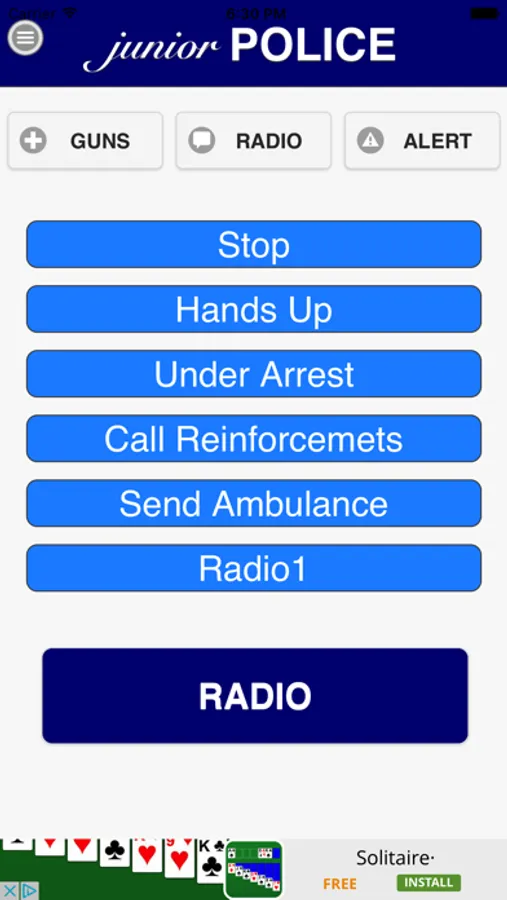 Bienvenido a Chico Policía. Esta aplicación usa sonidos e imagines para que sus niños se divertían jugando a ser Policías.