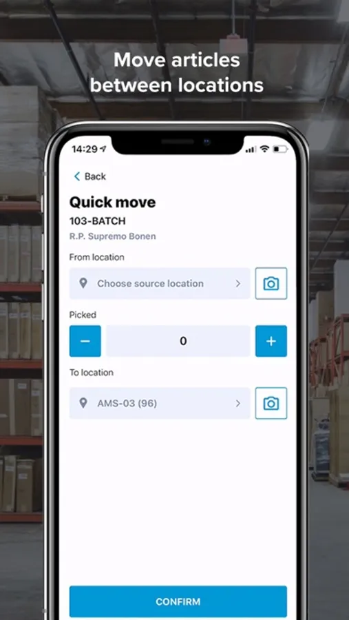 You can now move items with instant processing in your ERP by scanning with App4Picking. Scan the location and the item at the place you are taking the goods and do the same thing at the place where you put the goods back into storage. These transactions are processed directly in the ERP. You can find an overview of the movements in the CMS.