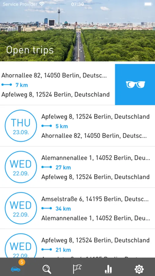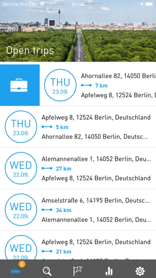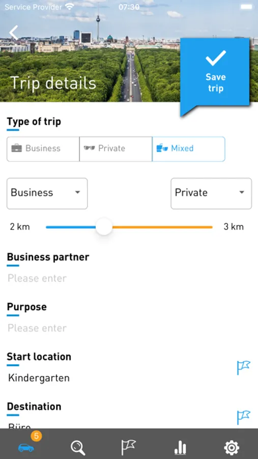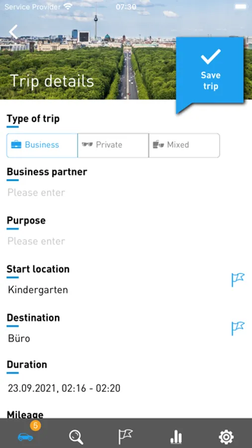 All trips are automatically recorded in the app and can be easily edited with your smartphone, tablet or PC. Swipe right for “business”, swipe left for “private”. So easy! Add “commute” with a tap. In “notes”, which also appear in the export, important details can be added.