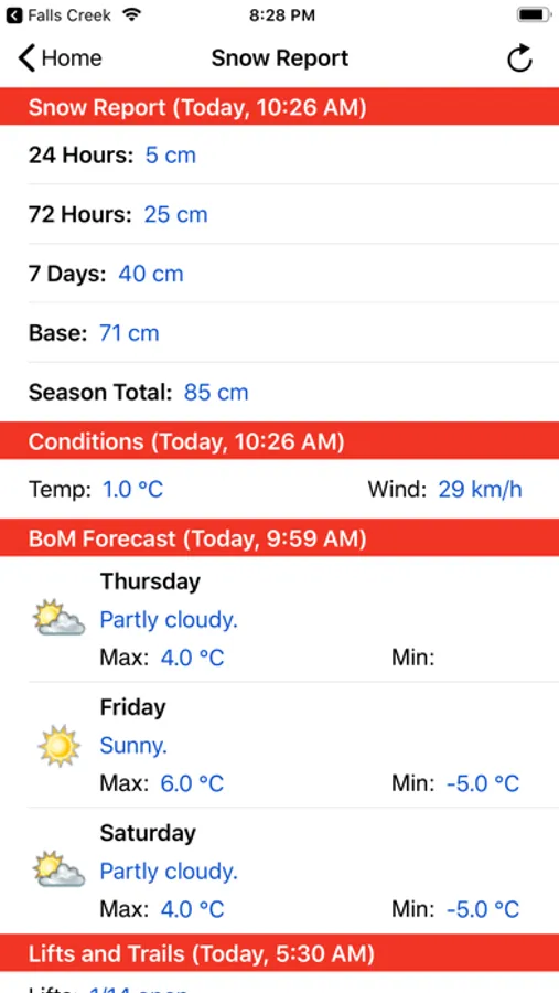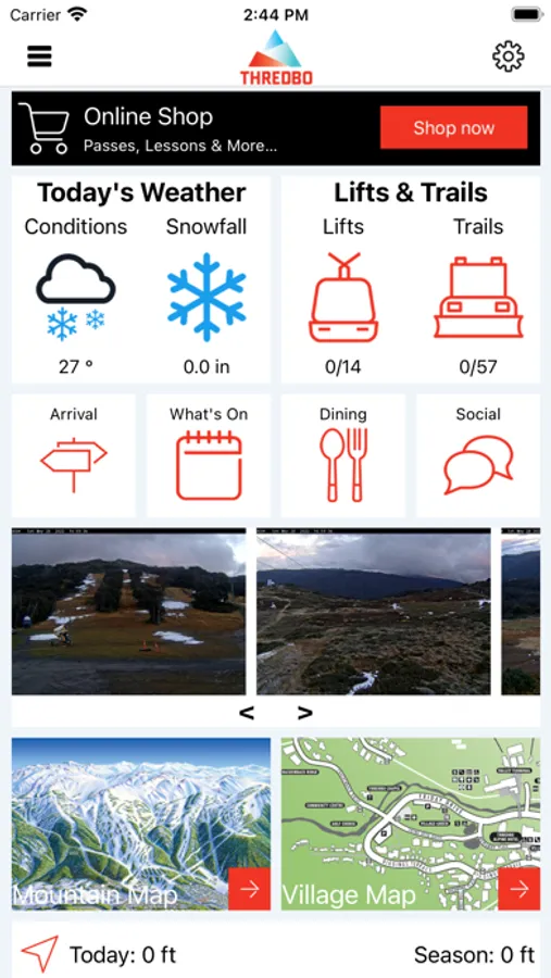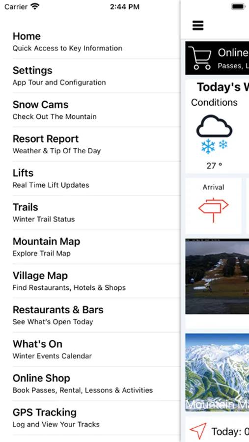 • Find up-to-date information about the mountain, including snow conditions, weather, and webcam images.