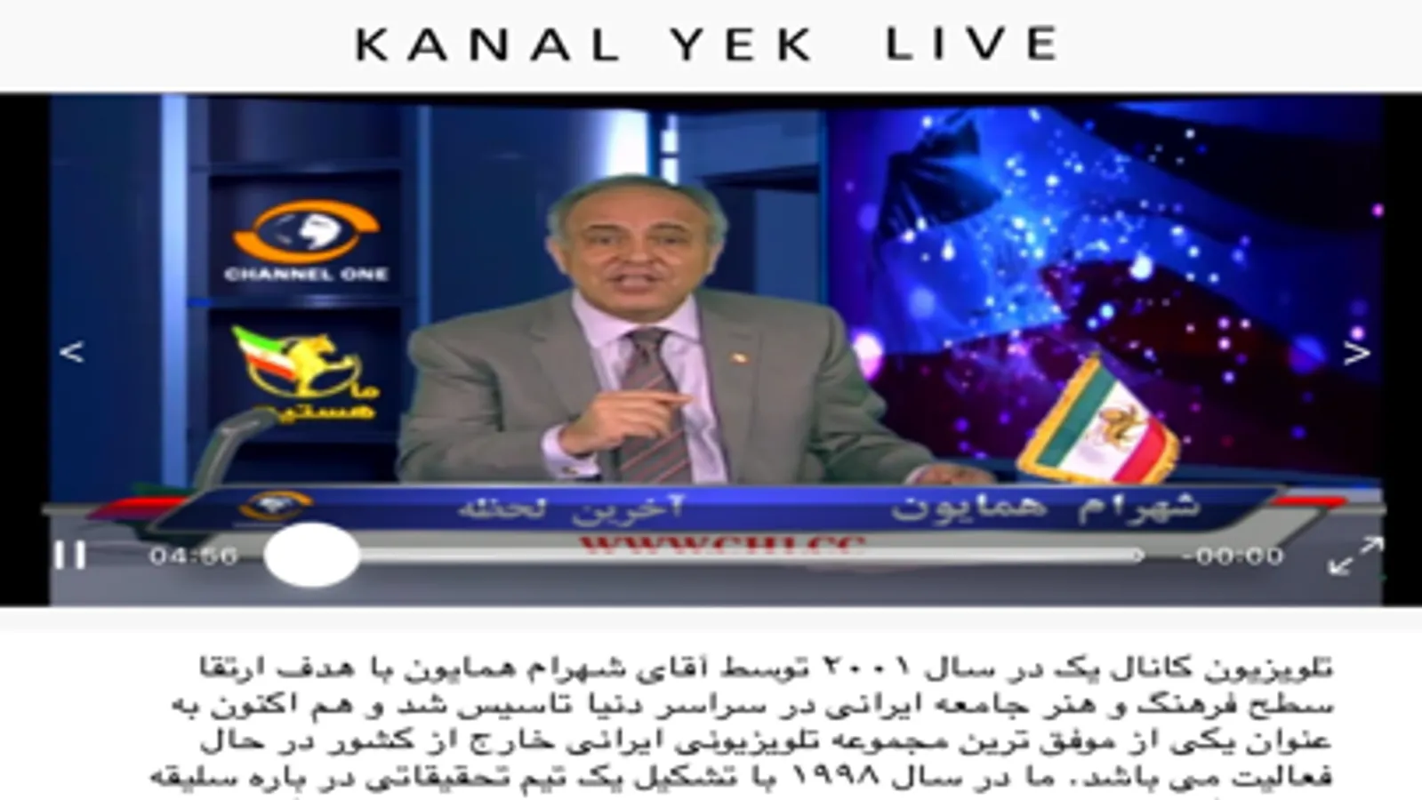 تلویزیون کانال یک در سال ۲۰۰۱ توسط آقای شهرام همایون با هدف ارتقا سطح فرهنگ و هنر جامعه ایرانی در سراسر دنیا تاسیس شد و هم اکنون به عنوان یکی از موفق ترین مجموعه تلویزیونی ایرانی خارج از کشور در حال فعالیت می باشد. ما در سال ۱۹۹۸ با تشکیل یک تیم تحقیقاتی در باره سلیقه ایرانی گام هایی در راستای تولید بهترین برنامه های اجتماعی فرهنگی بهداشتی و خبری برداشته ایم که نتیجه آن ۳۰۰۰ نفر عضو فعال که حمایت مالی کانال یک را بر عهده دارند می باشد. کانال ما یک کانال جهانی می باشد که در آمریکا، کانادا، مکزیک، اروپا، خاور میانه و آسیا پخش می شود . ما تنها با یک زبان فارسی با مردم صحبت نمی کنیم. هدف ما ارتباط با قلب و فرهنگ درونی بیننده ها می باشد.