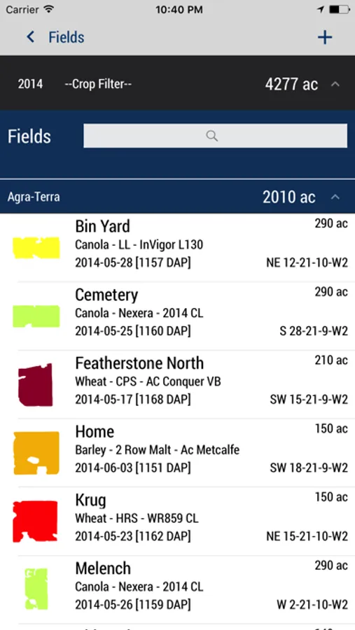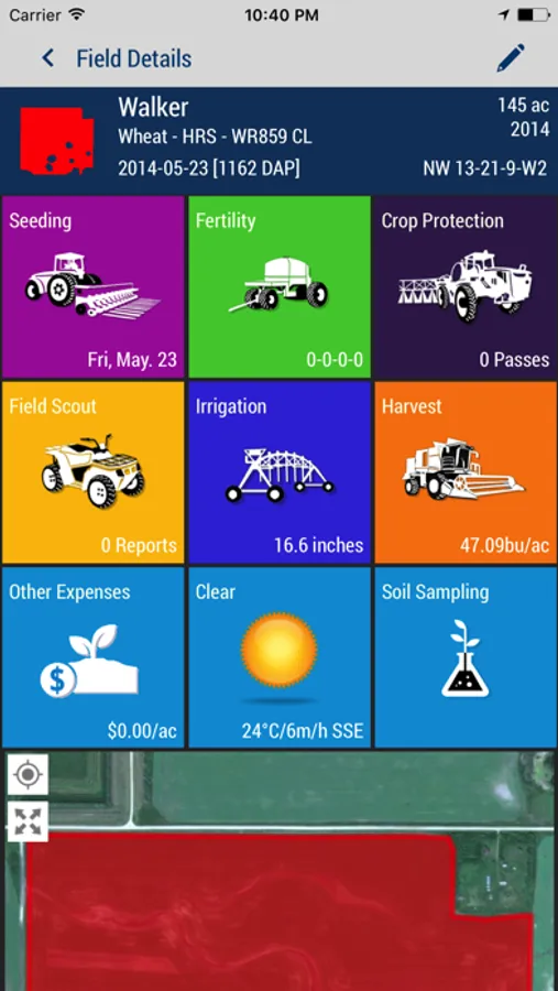- Enter details on tillage, planting, spraying, harvest, etc.