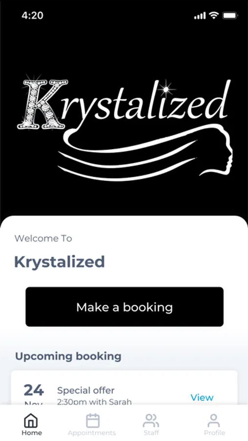 The Krystalized app makes booking your appointments and managing your loyalty points even easier. You're just a few taps away from feeling good and looking great!
