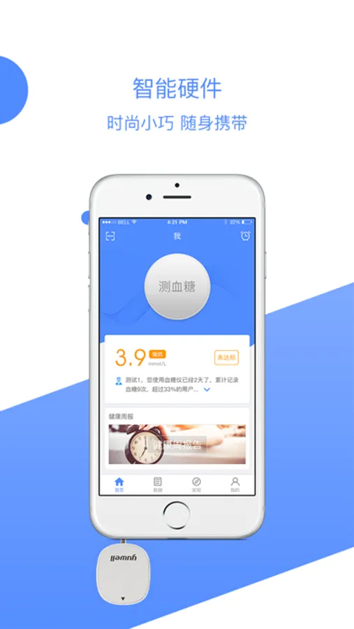 口袋糖助手APP搭配手机血糖仪设备一起使用,成为每个人的智能化血糖管理工具。
