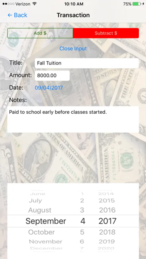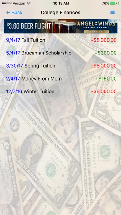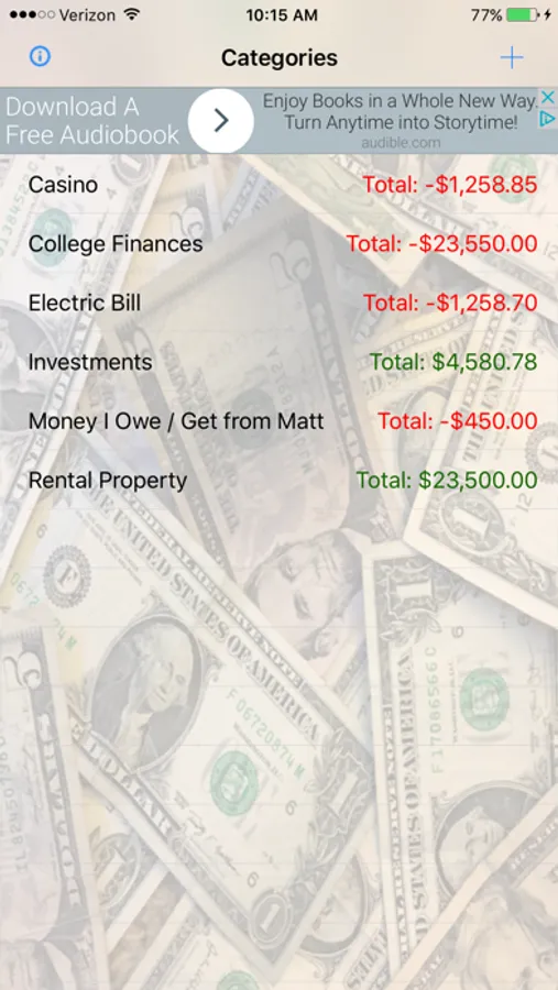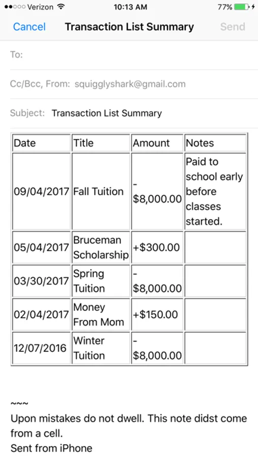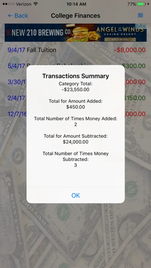 Simple Cash Tracker is designed to flexibly handle any financial tracking you desire. Want to track how much money you owe your friend? How about how much you spend on food each week? What about your tuition and scholarships? Do you ever wonder how much you actually spend vs. winning at the casino? Simple Cash Tracker can answer all those questions and more! Some of the highlights of the app include: