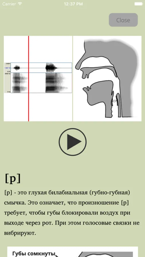 - Четкое графическое, звуковое и текстовое описание звуков речи