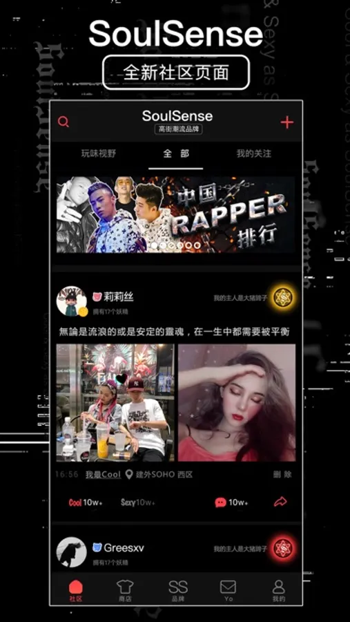 SoulSense APP 是SoulSense品牌旗下一款基于品味打造的Cool&Sexy社区APP,打造未来生活方式实验圈,你的创意,审美,才华,独特,在这里不会被埋没,在这总能找到你志同道合的伙伴,完美回避尬聊、辣眼睛、冷场、尴尬等场面。