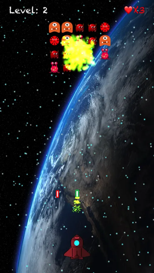 Space invader fighter is a fun and easy to play iOS App game for everyone. Tilt your device to control spaceship horizontal movement (left/right). Tap screen to fire bullet to kill invaders. If the invaders touch spaceship or you were hit by invader bullet three times, the game is over.