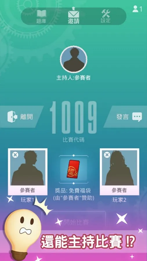 • 主持模式:化身主持人,邀請兩位朋友一起連線玩,主辦你自己的比賽!