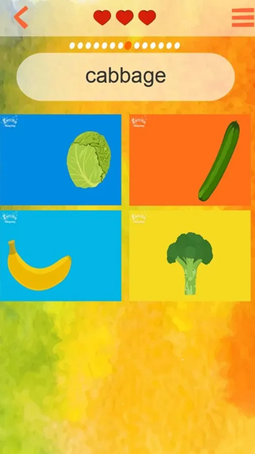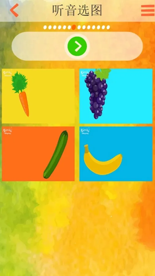 2,当对单词有一定的认识后进入练习模式。练习模式由:听声选图、看图选声、模拟录音、看字选图等组成。
