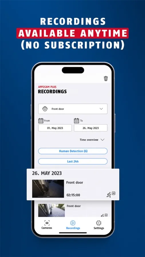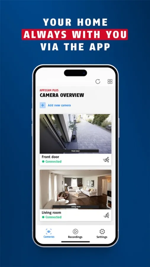 With App2Cam Plus you have permanent access to the live image, the memory and all functions and settings of your security camera.