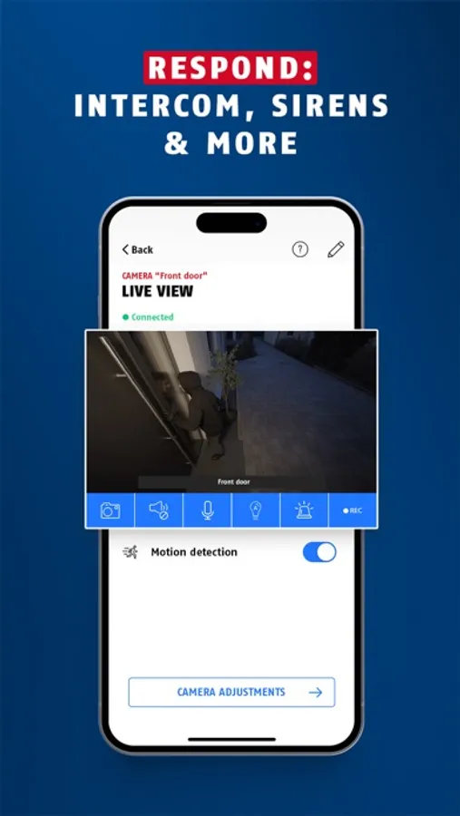 - For cameras with intercom function, you can activate the camera's microphone and loudspeaker in the live view at the touch of a button to talk back via smartphone and quickly clarify situations.