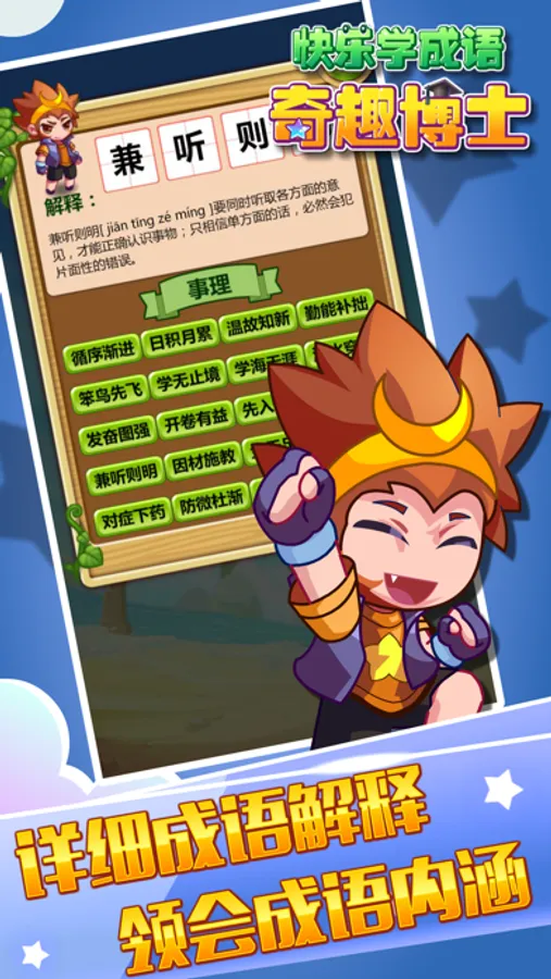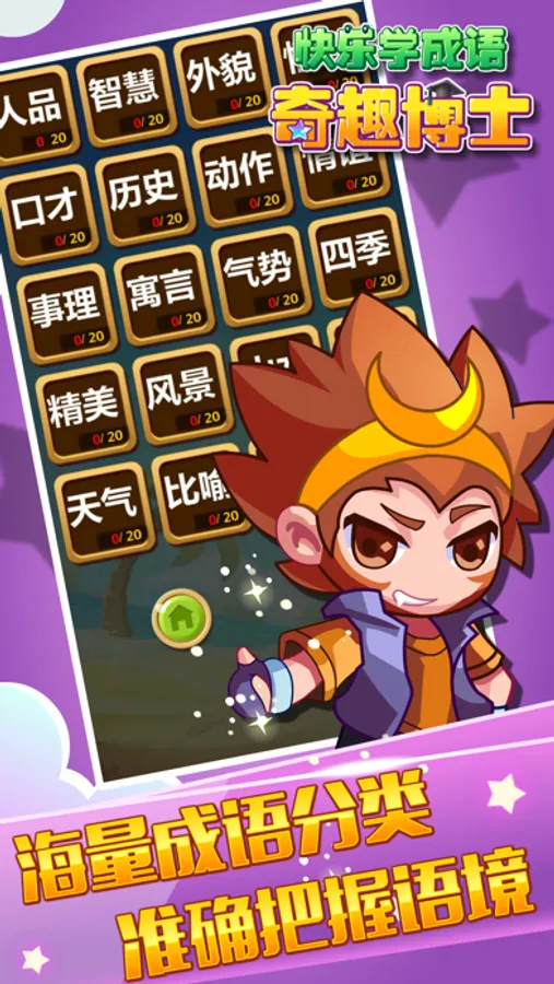 《悟空学成语》是一款专门为孩子学习成语而制作的趣味成语益智填字游戏。