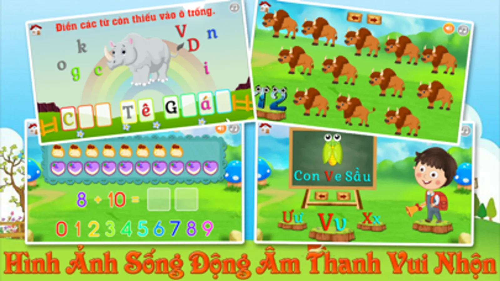 Học Chữ Cái - Học Số là trò chơi dạy các bé học 29 chữ cái Tiếng Việt và học số từ 1 đến 20