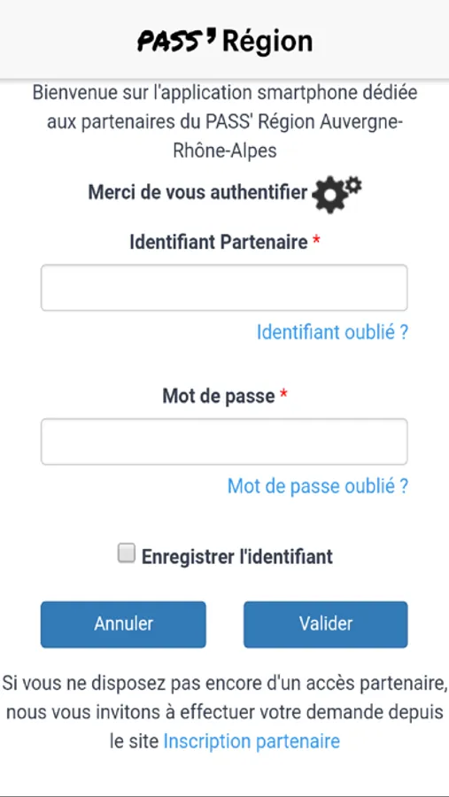 L’application Partenaire PASS’ Région permet, après identification avec l'identifiant et le mot de passe partenaire, de réaliser des transactions avec les bénéficiaires qui présentent leur PASS’ Région (via leur carte ou l'application mobile).