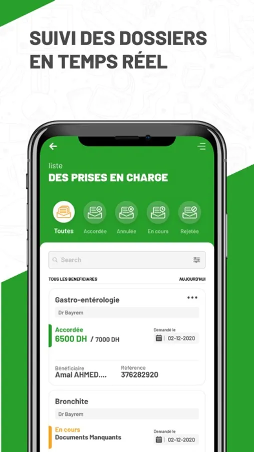 - Consulter les dossiers maladies par adhérent et par bénéficiaire;