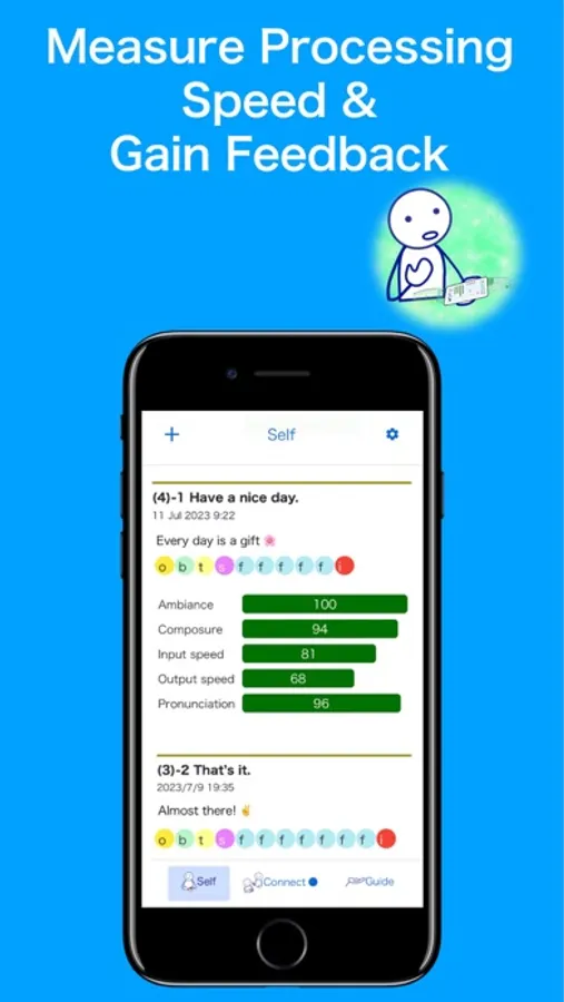 Mastering everyday English requires vocabulary and grammar knowledge, plus the brain function to process connections between letters, sounds, and images. Empatheme captures processing speeds in seconds, too swift for the conscious mind to track, and converts them into data. Daily statistical feedback helps you gain insights and deepens your immersion in learning. Here, the acquired knowledge and information are just the beginning. The true value lies in applying this awareness to practice, which accrues as a personal learning resource.
