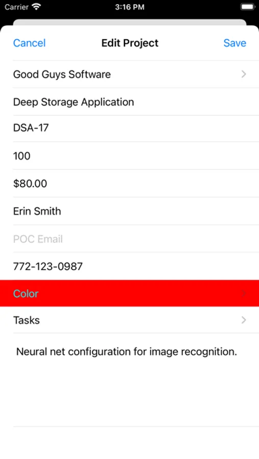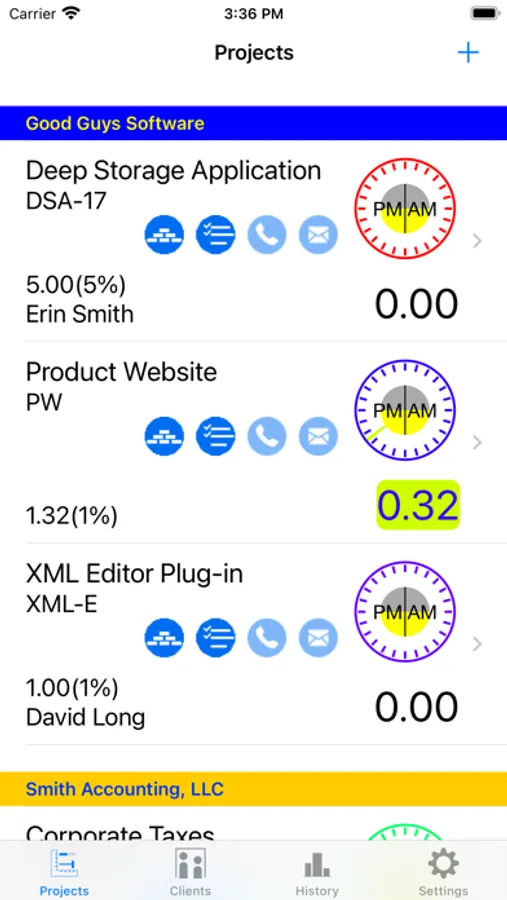 Client Task is an iPhone app that helps contractors record time spent working on client projects. Once a user enters contractor and client contact information, projects can be created and time spent on those projects tracked.