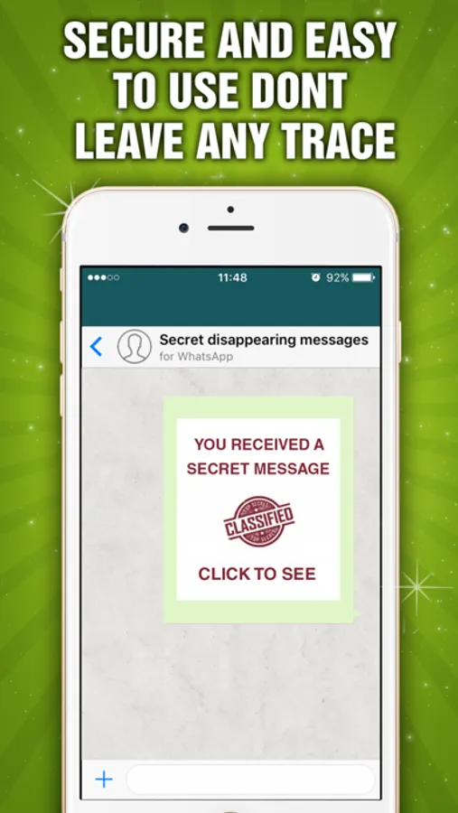 • Secure and Easy to use dont leave any trace, send as many Secret disappearing messages as you want and they will all be deleted forever.