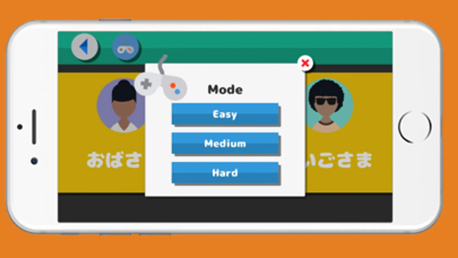 - Easy mode contains Hiragana and Katakana vocabulary. This mode still show image for Japanese vocabulary to hint the player.