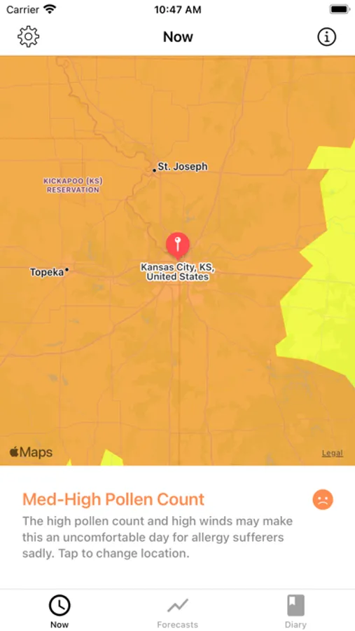 - Shows a map where you can see which areas have the highest pollen count!