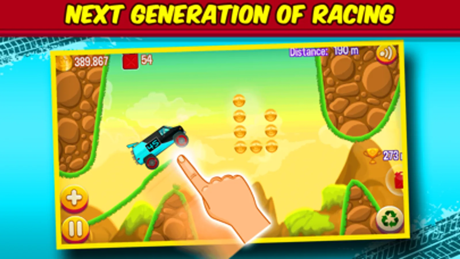◆ Collect coins, fuels and surprise coin packages while climbing hills.