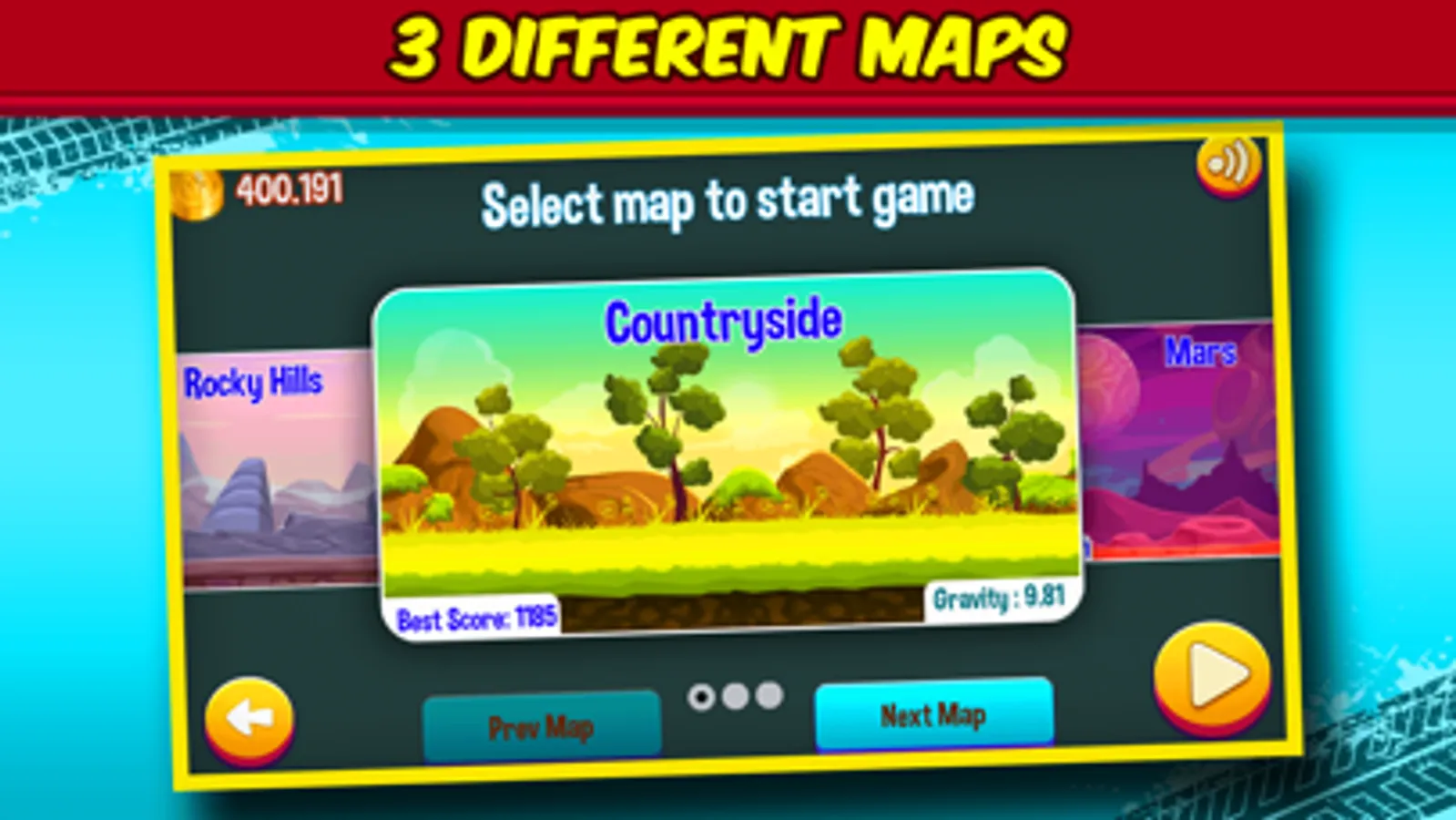 ◆ Cars have different properties like engine power, suspension and grip. Some cars are great climbers and some of them are speed enthusiastic.