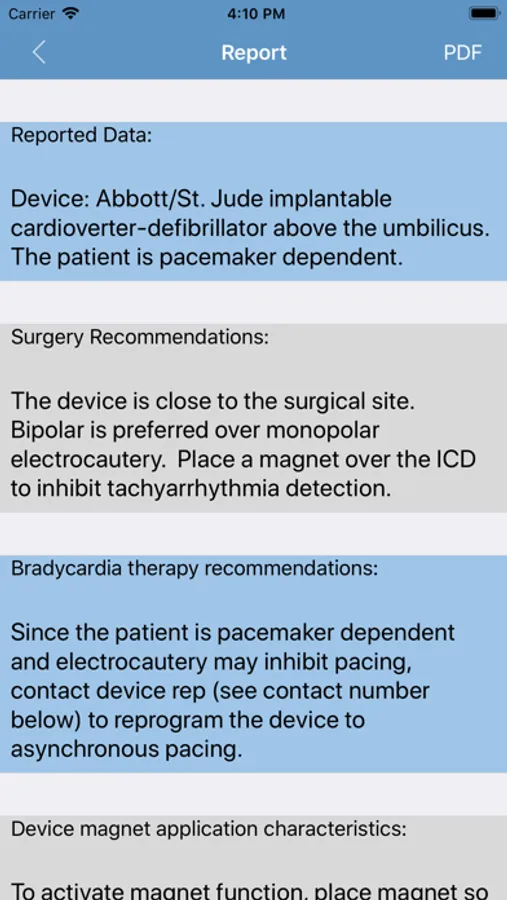 The user completes a patient profile consisting of information regarding surgical location and pacemaker dependence and a plan is generated which offers guidance regarding the need for use of a device magnet or device reprogramming. Additional information consists of device response to magnet application and contact information of device manufactures and their representatives. Anesthesiologists, surgeons and associated allied health practitioners can easily implement various measures to mitigate the effects of electrocautery on device function.