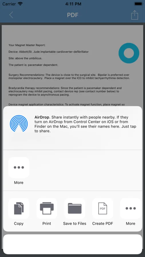 The report may be shared via email, text message or printed using AirPrint-enabled printers .